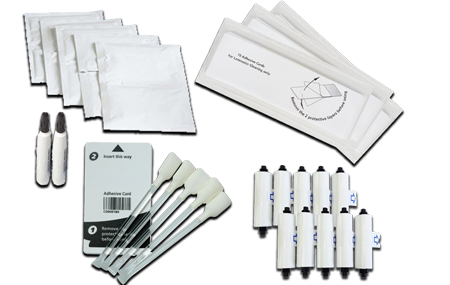 5 rulli di pulizia (569946-101), 5 tamponi di pulizia (507377-001), 10 schede di pulizia con isopropanolo (552141-002), 2 bastoncini di lappatura (530030-001) e 12 paia di guanti (812335-001)